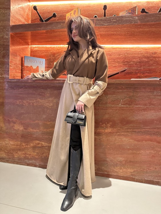 أضيفي لمسة من الدفء والأناقة إلى إطلالتك الشتوية مع عباية الجوخ المصنوعة من أجود أنواع القماش. تجمع هذه العباية بين اللونين البيج والبني في تصميم عصري وأنيق، مما يجعلها مثالية للمناسبات المختلفة. تتميز بنعومة القماش ودفئه، مما يجعلها مثالية للأيام الباردة.